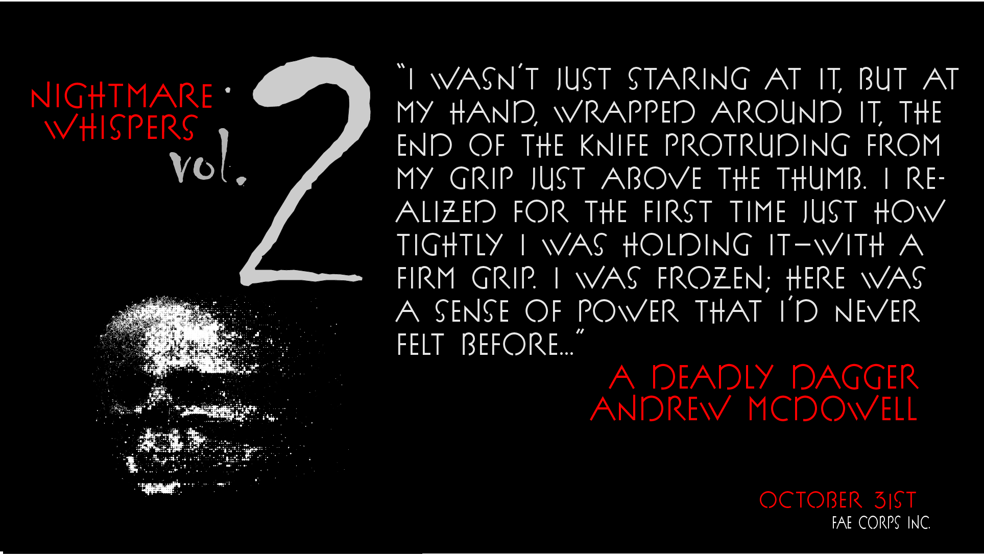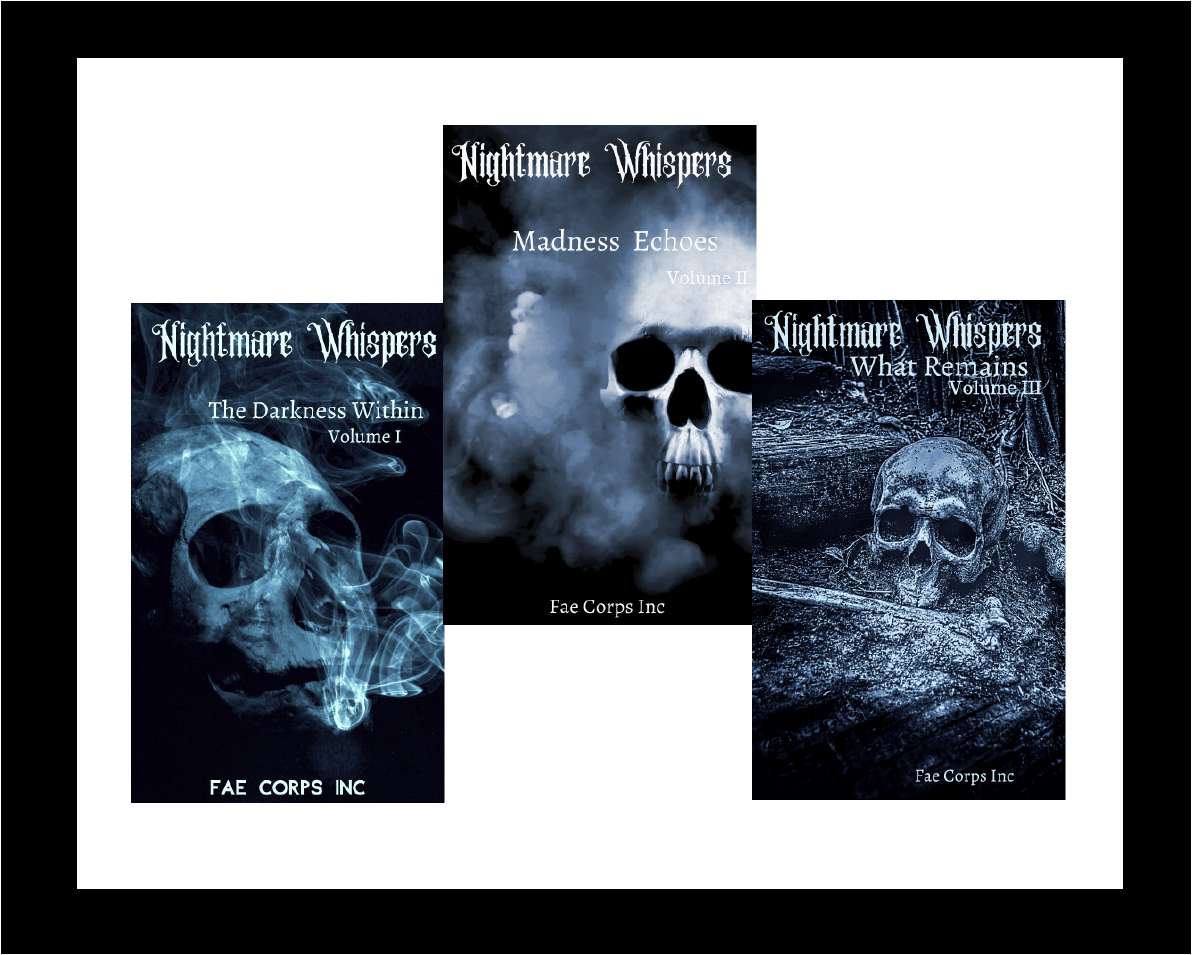 And don’t forget to check out the other anthologies from Fae Corps that I’ve been in as well. Here’s some promotional material from last year’s marketing campaign for two of them, Fae Dreams and Nightmare Whispers, Volume II: Madness Echoes:
